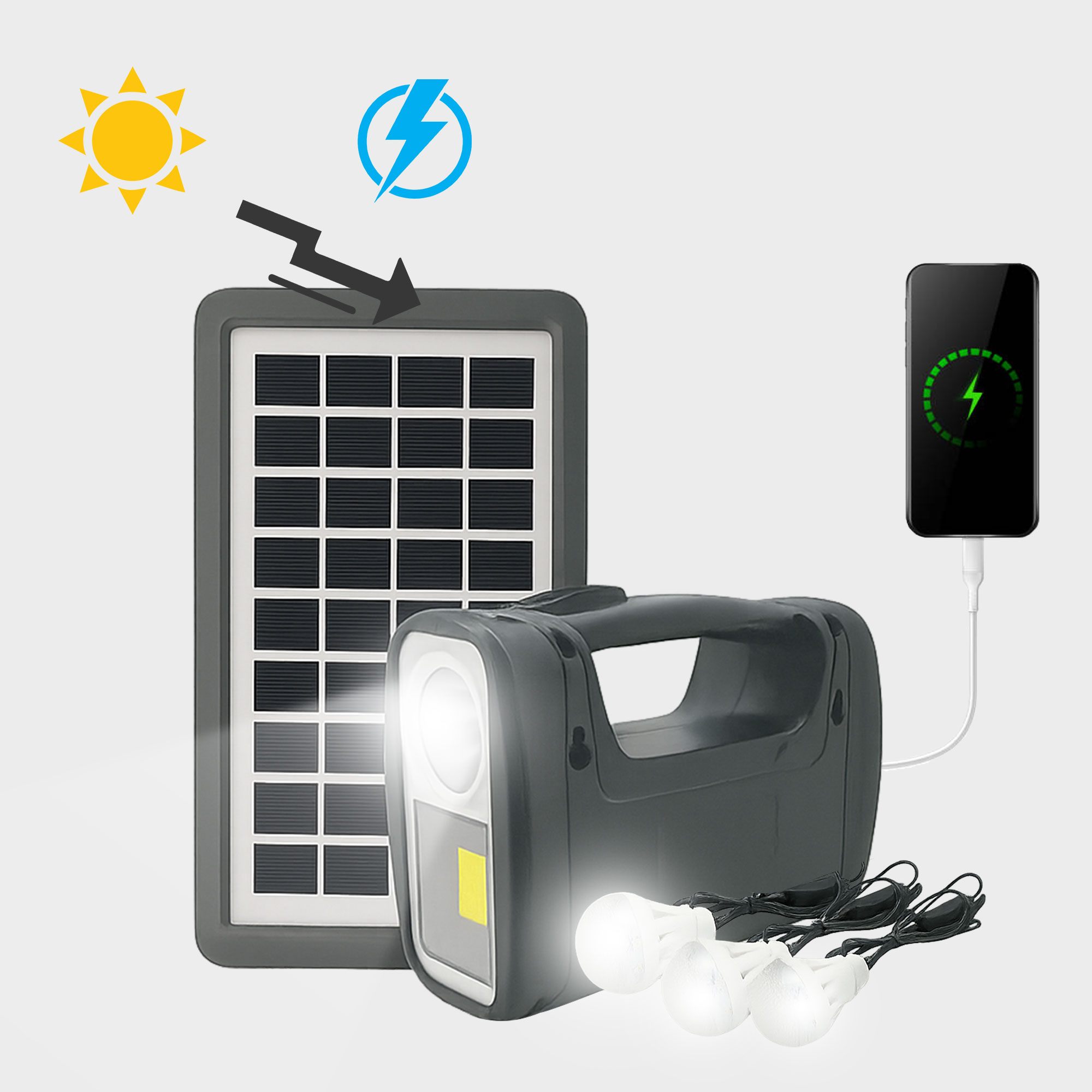 بعد ما يشحن، تقدر توصل اللمبات وتشغلها عن طريق المفاتيح الخاصة.